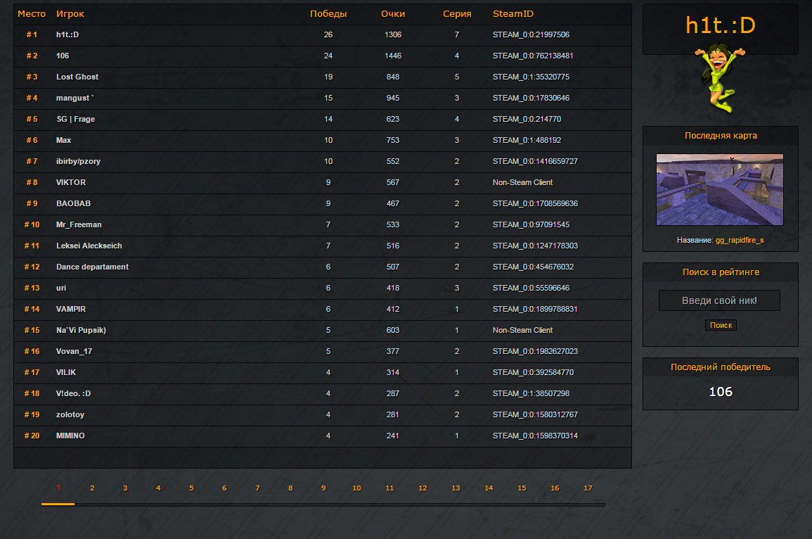Psychostats - также я решил оставить, он доступен на странице GG статы, в меню ссылка под названием Psycho - стата.