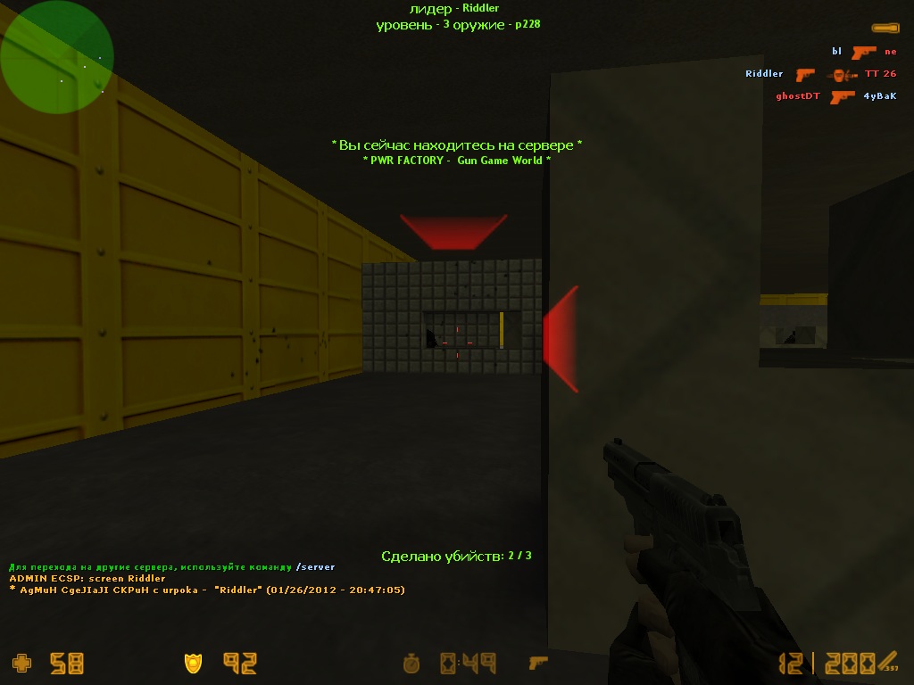 я что то туплю... ты откуда вообще взял эту надпись 1. * PWR FACTORY * - Gun Game World (gg_brakka) ? |
