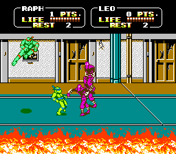 Игра рассчитана на одного или двух игроков. В начале можно выбрать одну из четырёх черепашек-ниндзя: Леонардо, Рафаэль, Микеланджело или Донателло. В дальнейшем сменить главного персонажа будет нельзя. Черепахи незначительно различаются между собой по скорости и дальности удара. Сражаться предстоит против футов, крысоловов, радиоуправляемых вертолётов и других персонажей, позаимствованных из мультсериала. Всего в игре 7 разнообразных сцен (уровней), в конце каждого из которых надо победить финального босса. Каждый финальный босс уникален, имеет собственные приёмы и алгоритмы движений, и, в отличие от обычных противников уровня, требует от одного до нескольких десятков попаданий для уничтожения. За каждого убитого противника, в зависимости от версии игры, даётся определённое количество очков. Набирая очки, можно зарабатывать дополнительные жизни.