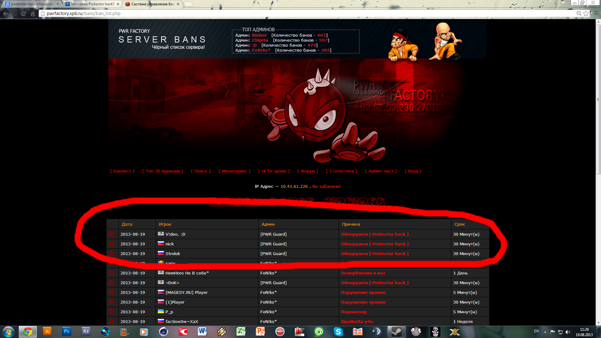 upd. Судя по банлисту с 20:00 вчерашнего дня понеслись баны за протектор. В общей сумме было забанено где-то 50 человек.) Правда, не факт, что именно тогда произошла ошибка.