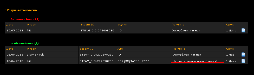 Пахатинчик-это я... Бан дал на день, за неоднократные оскорбления в адресс игроков сервера (скрины присутсвуют) Тем более ты бывший адм, вроде как правила должен знать.