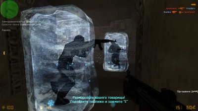 Цитата: Что бы разморозить товарища, необходимо подойти к замороженному игроку и зажать E (USE), процесс разморозки сопровождается информацией в виде timebar как для размораживающего, так и для размораживаемого.